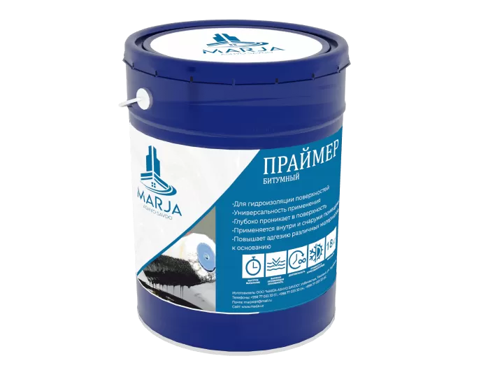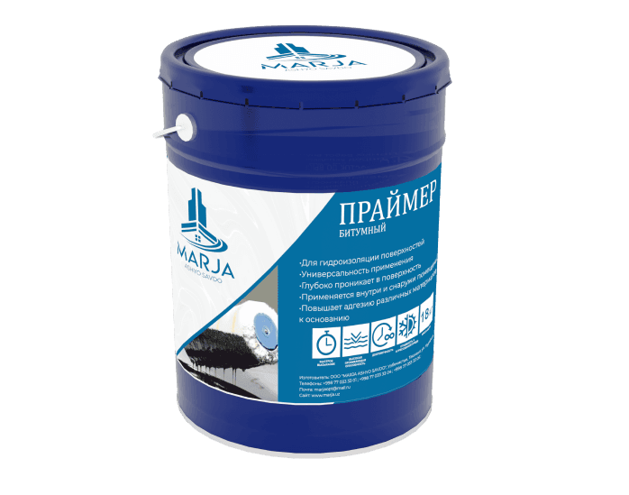 Marja universal bitumen primer: it is a solution of high-quality waterproofing petroleum bitumen in specially selected organic solvents. It has a high penetrating ability.