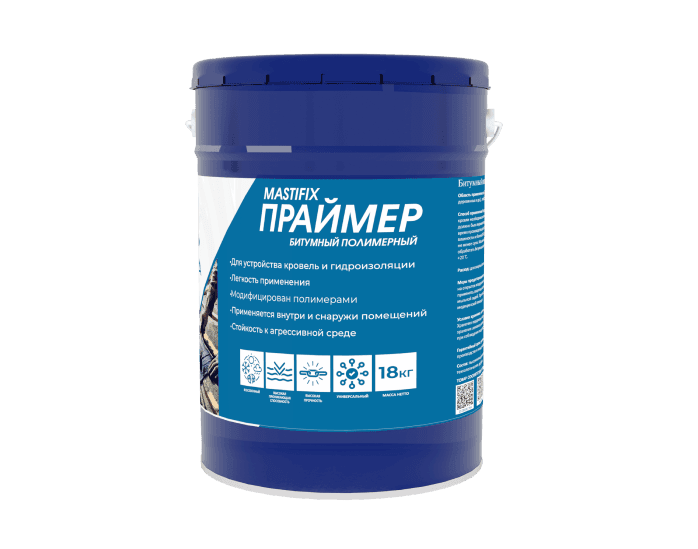 Битумный праймер полимерный MASTIFIX– это раствор нефтяного битума, полимеров и адгезионных добавок в органических растворителя. Отличительной чертой данного продукта является стойкость к агрессивной среде, перепадам температуры и высокое сцеплением к поверхности.