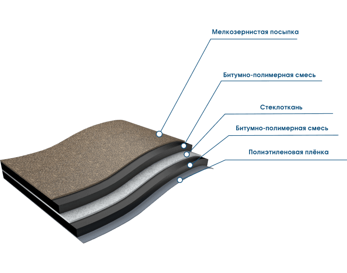 Roofizol ТКП-бо роҳи дуҷониба ба заминаи нахи шишагӣ (нахи шишагӣ матои шишагии каркас) аз битум-полимерӣ иборат аст, ки аз битум, модификатори полимерӣ ва пуркунандаи минералӣ иборат аст ва сипас ба ҳарду тарафи матоъ қабатҳои муҳофизатӣ гузошта мешавад. Ҳамчун қабати болоии муҳофизатӣ фольгаи алюминий ва пленкаи полимерӣ истифода мешаванд.
