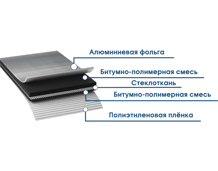 Roofizol ТФП бо роҳи дуҷониба ба заминаи нахи шишагӣ (шишаи шишагии каркасӣ) аз битум-полимерӣ, ки аз битум, модификатори полимерӣ ва пуркунандаи минералӣ иборат аст, бо истифодаи минбаъдаи қабатҳои муҳофизатӣ ба ҳарду тарафи матоъ ба даст оварда мешавад. Ҳамчун қабати болоии дӯхташуда фольгаи алюминий ва пленкаи полимерӣ истифода мешаванд.